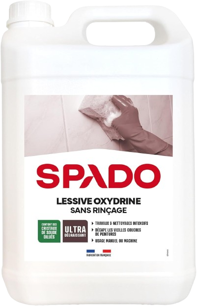 SPADO- Lessive, nettoyage sans rinçage - Murs, sols, plafonds, plastiques, métaux - Nettoie, dégraisse, décrasse, rénove - Usage manuel ou machine - sans phosphate -5L -Fabriqué en France
