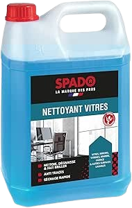 SPADO - Nettoyant vitre - Multi surfaces - Sans traces - Fait briller - Séchage rapide - Contact surfaces alimentaire - flacon 100% recyclé - 5L - Fabrication française